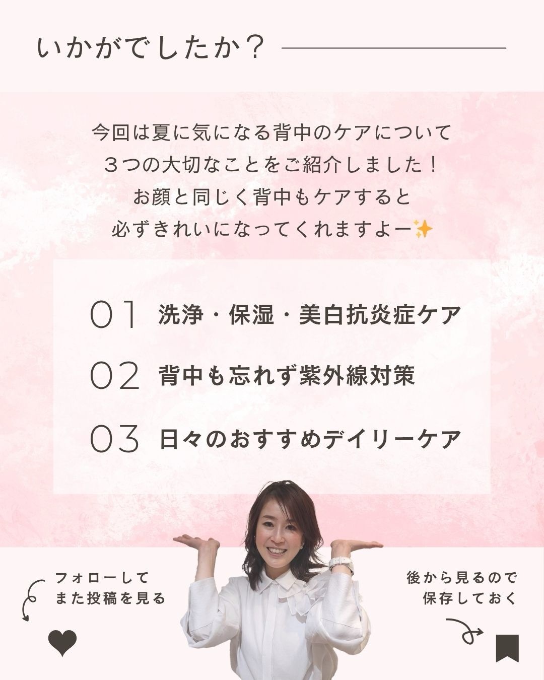 デコルテや背中は、自分では見えにくいけれど、人からはよく見られているパーツ。だからこそ、丁寧なケアを心がけることで、印象がぐんとアップします。今日からできる小さな習慣を、ぜひ取り入れてみてくださいね。