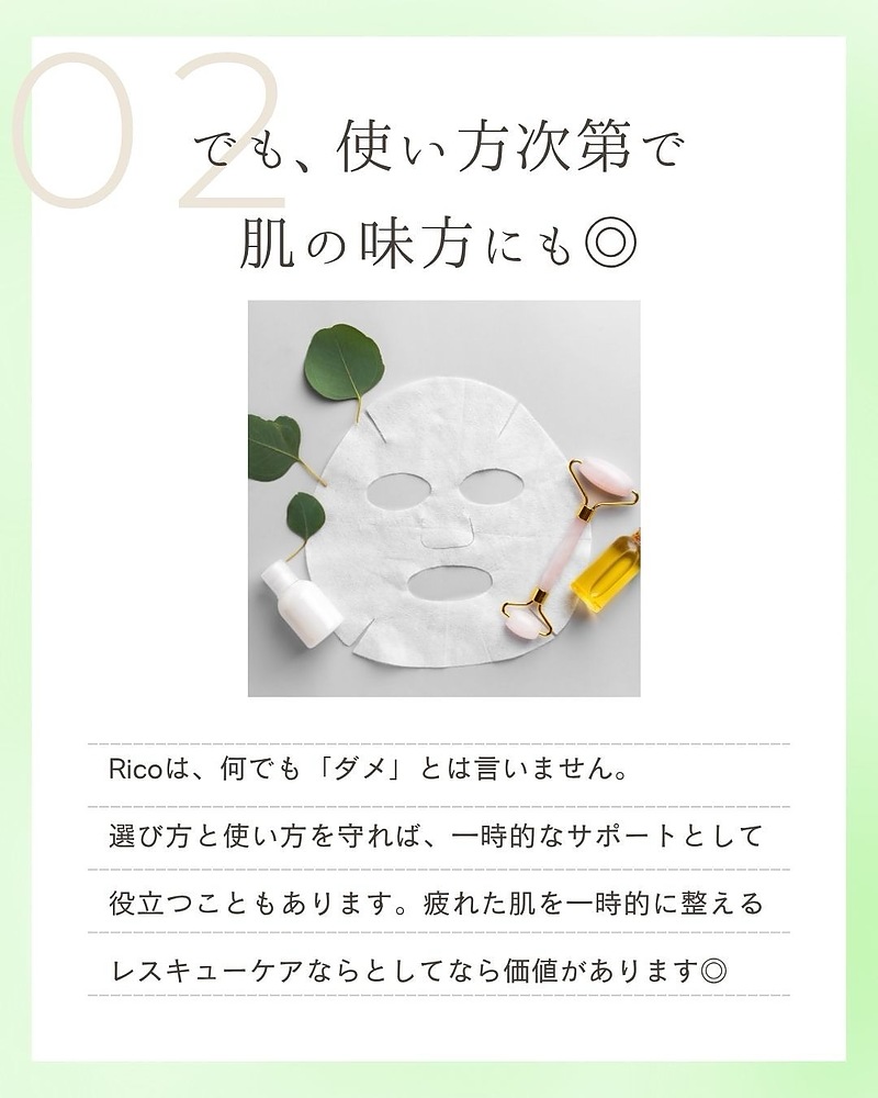 Ricoでは、シートマスクに頼りすぎるのではなく、毎日の基礎ケアを通じて自肌力を育てることを大切にしています。