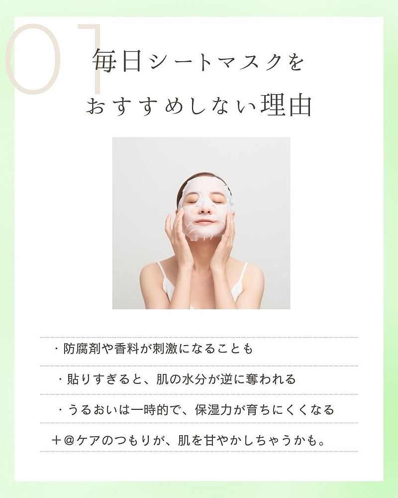 なぜなら、シートマスクが与えてくれる潤いは一時的なものであり、さらに注意すべき落とし穴もあるからです。