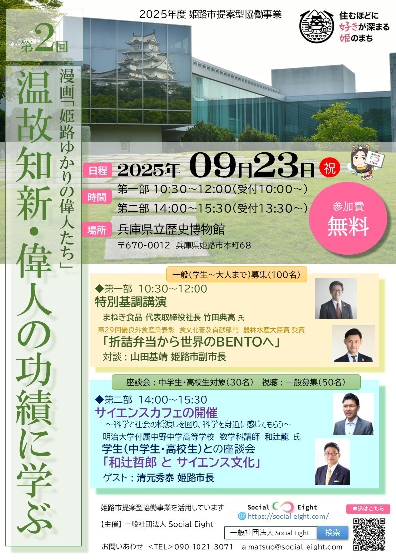 漫画「姫路ゆかりの偉人たち」第一巻発刊にともない、偉人の功績に学ぶセミナーを開催