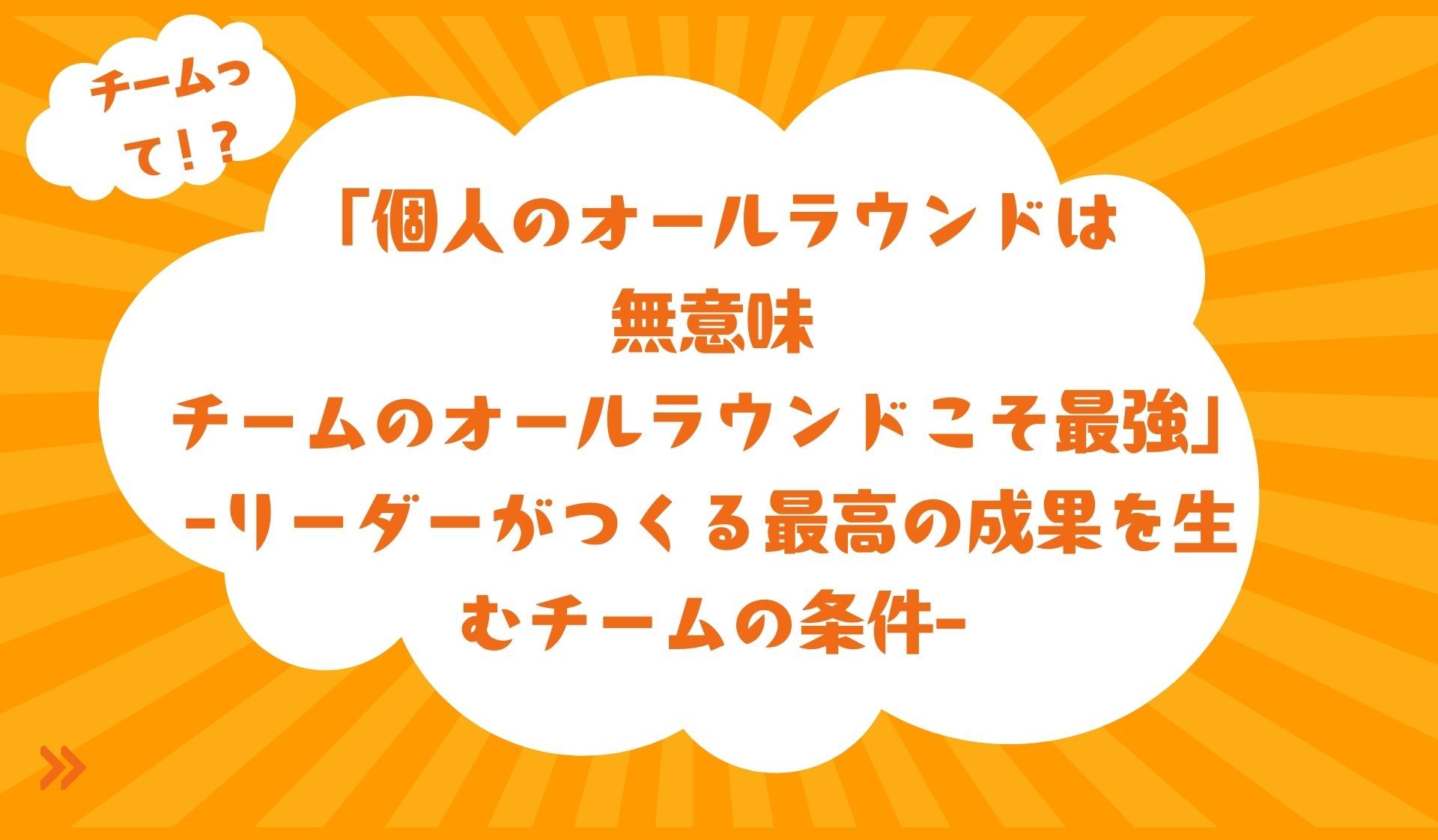 リーダーの本当の仕事は、「メンバー全員にオールラウンドを求めること」ではなく、