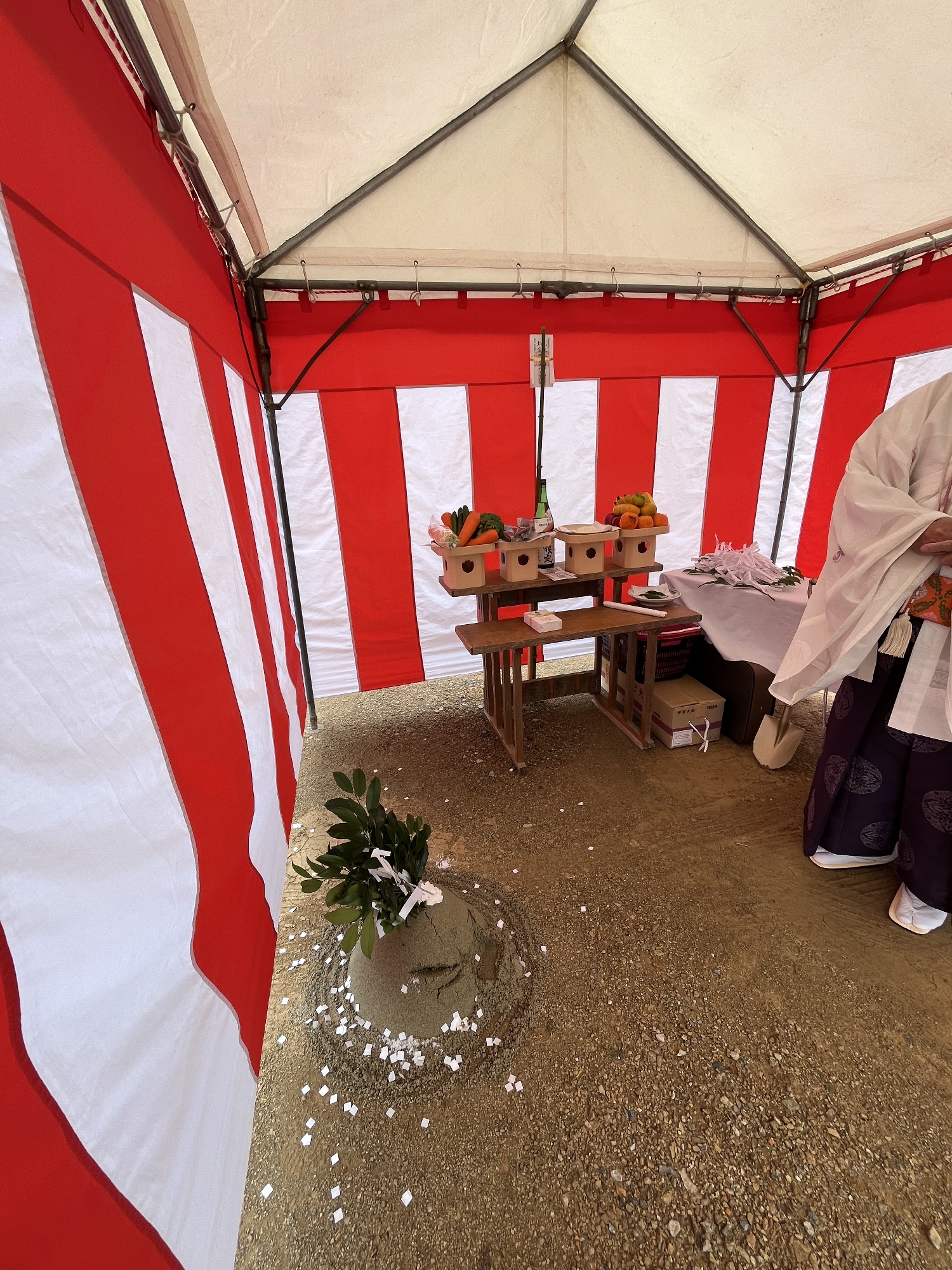 地鎮祭の時間自体は1時間くらいです。天気や状況により変わることはありますが