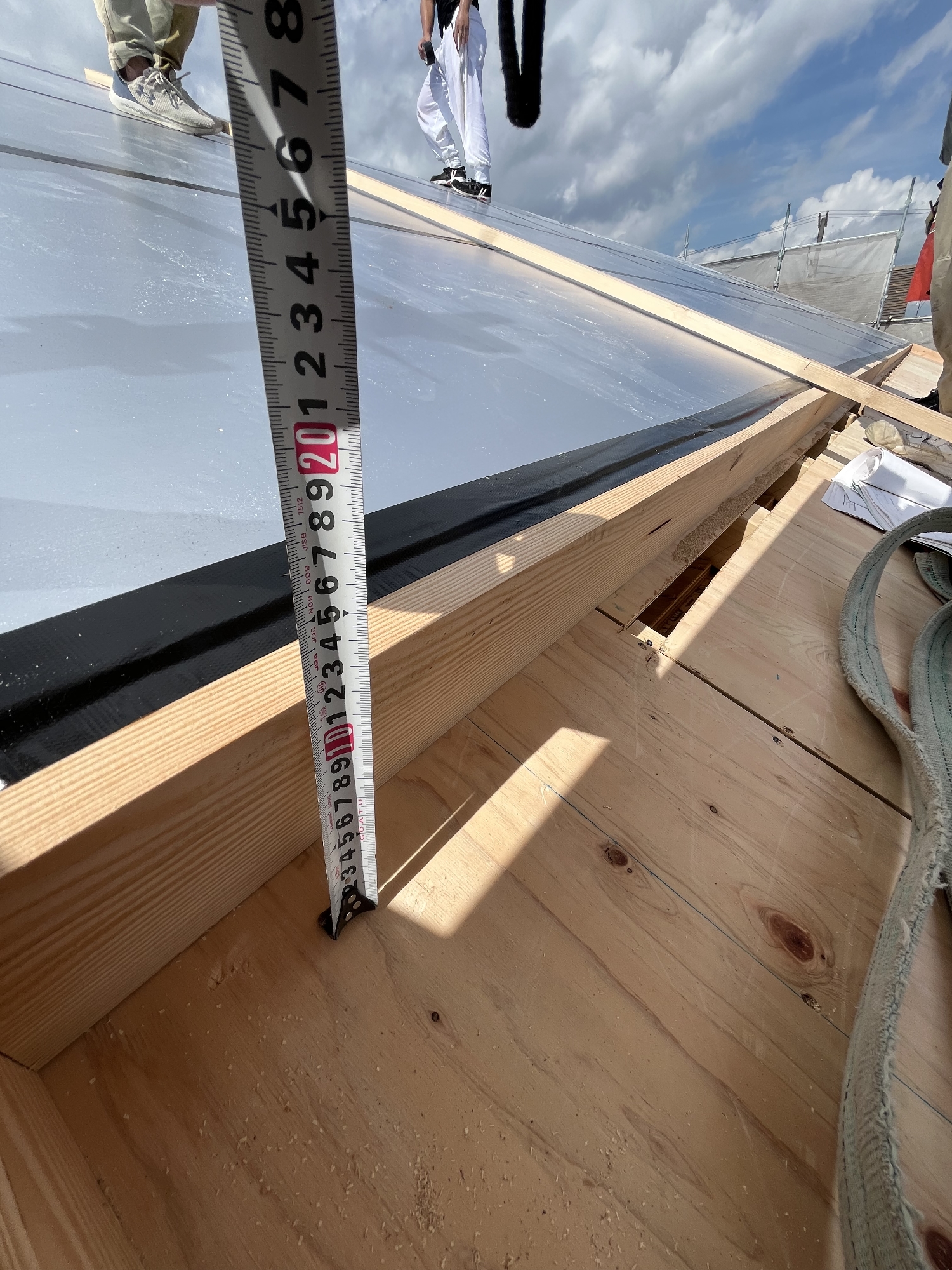 通常は1階と2階の間で見切りを設置し分割して施工しますが、今回は見切なしの7m一枚物を