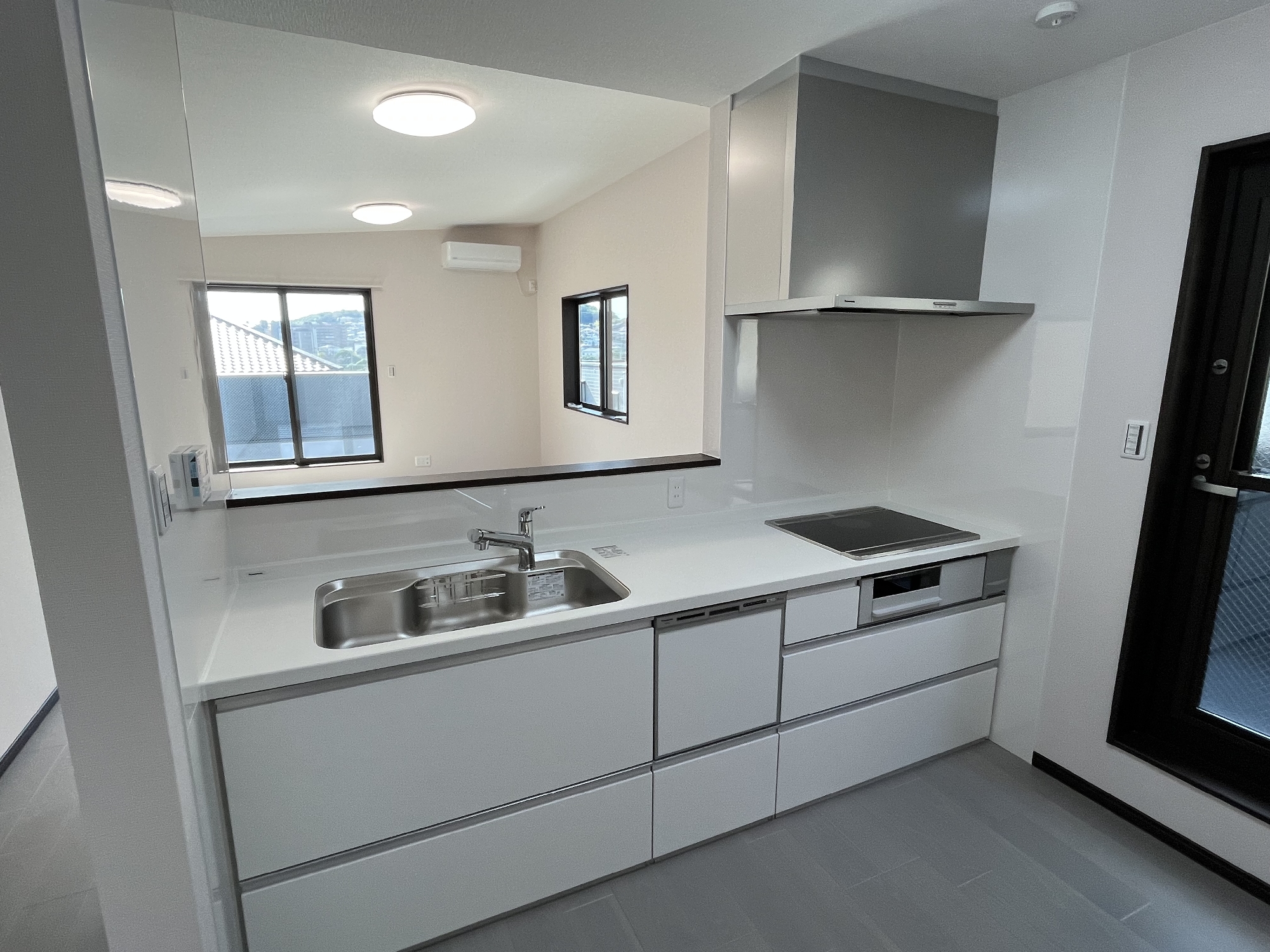 建物は全て同じ間取りで建築しておりますが、内装材やキッチンの面材色を変えることで