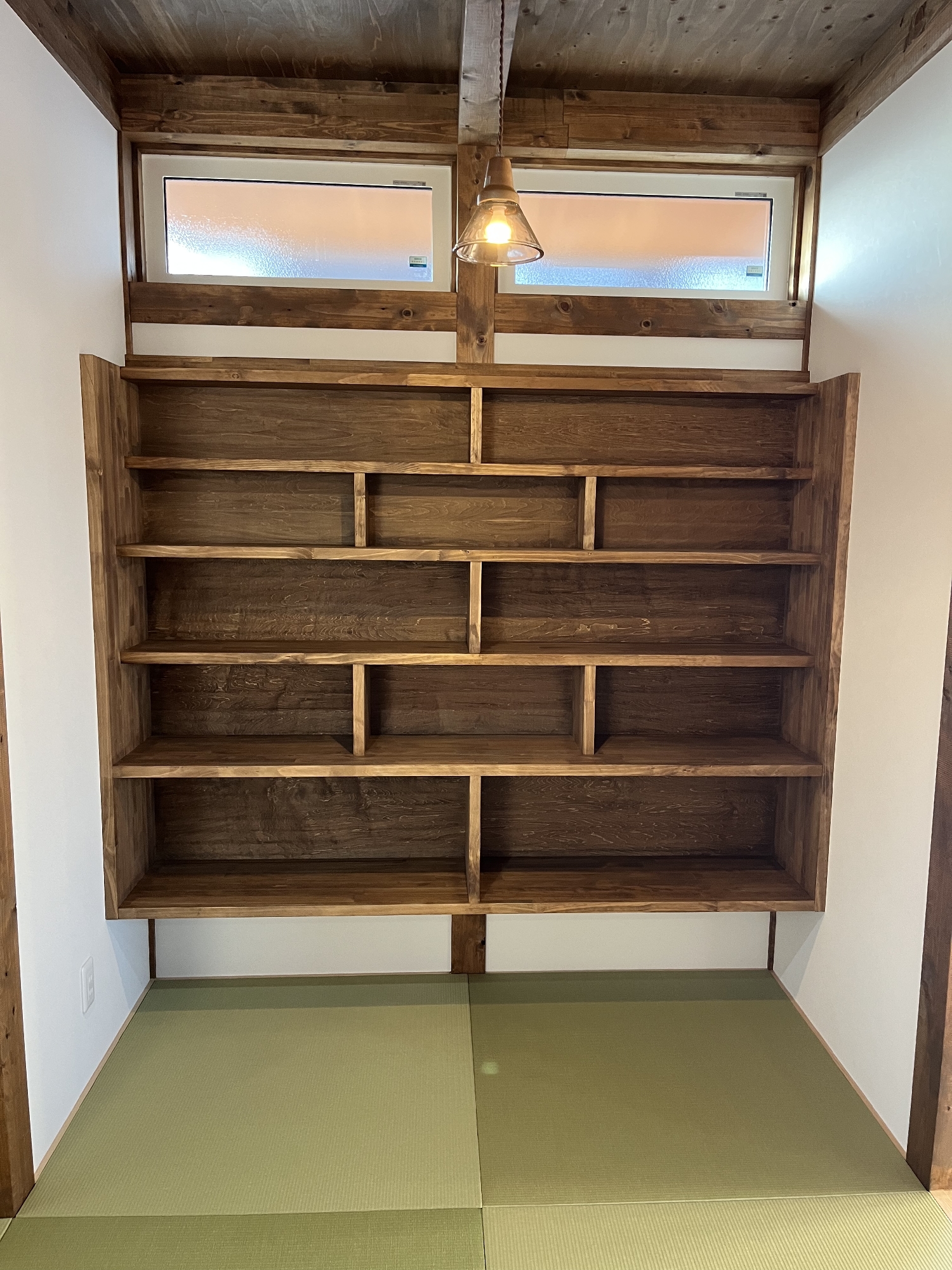 下の暖は絵本、上の段は文庫本を収納できるように寸法を決めて作成しました。