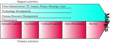 前回は、上式の右辺 cost を決める要素として、直接費(primary activities) のoutbound logistics & supply chain management を紹介しました。
