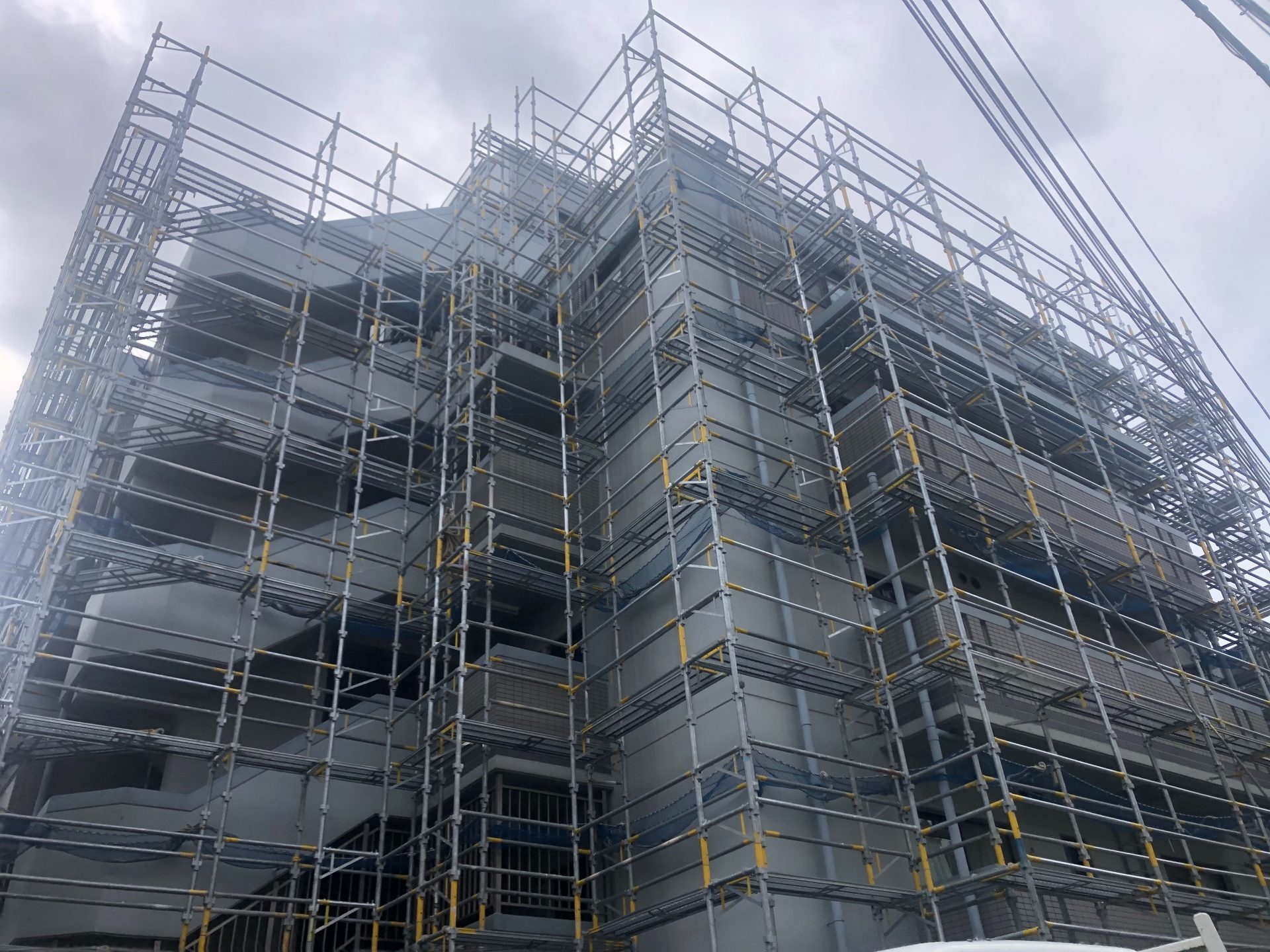 このように、足場を組んで外壁全体を覆い、調査・補修・塗装を段階的に進めます。写真付き報告書や色分け表を活用すると、理事会や住民への説明が格段に分かりやすくなります。