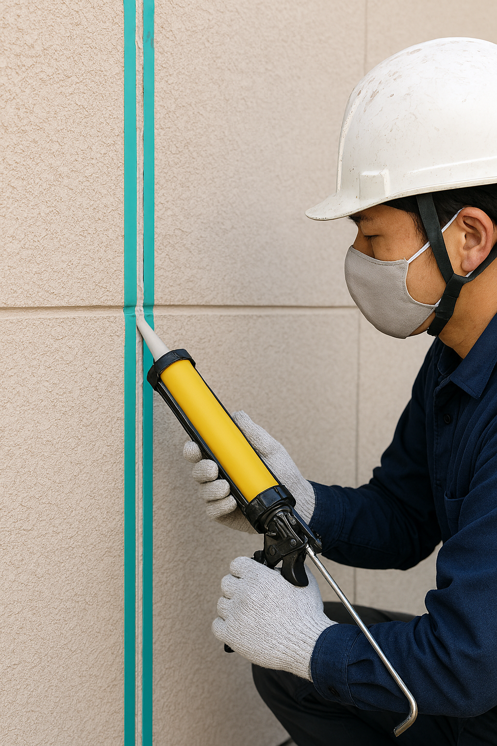 シーリング(コーキング)は、外壁パネルの目地やサッシ周りなどの“隙間”に充填して、雨水侵入を防ぎ、建物の動きを吸収する弾性材です。