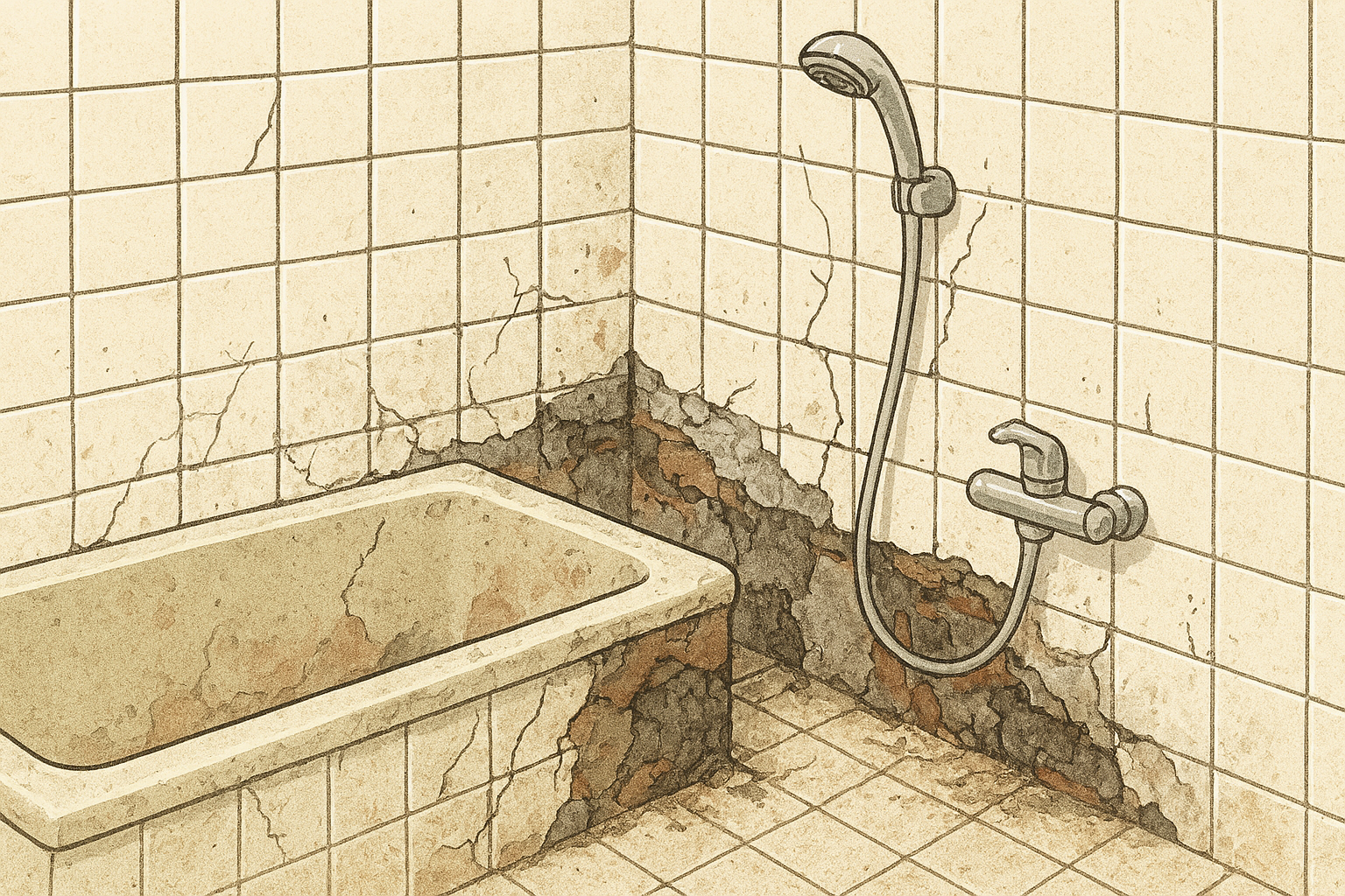 大規模修繕工事でタイル張り在来浴室が問題になる最大の理由は、「防水層・下地の劣化が見えないまま進行し、漏水・構造腐朽につながりやすい」点です。マンション全体の長寿命化を考えると、在来浴室は最もリスクが高い部位のひとつになります。