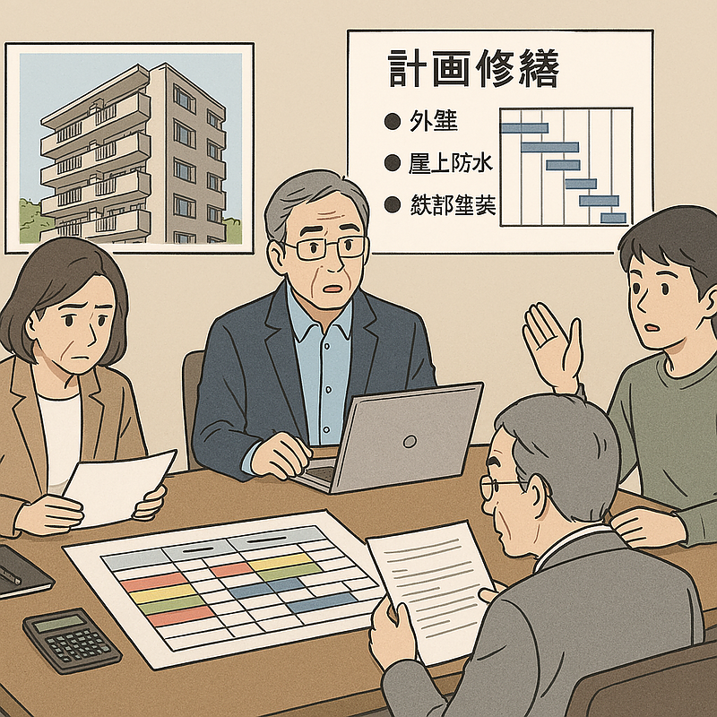 長期的にマンションの資産価値と安全性を維持するために、将来発生する修繕工事を計画的に整理し、費用を見通し、合意形成を進める仕組みです。