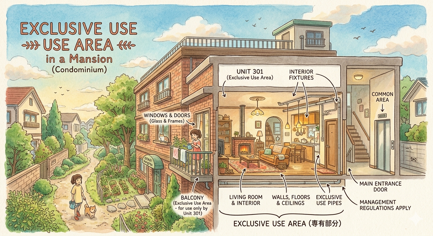 これらは見た目が自分の部屋に近くても、法律や管理規約上は共用部分とされることが多い点が重要です。