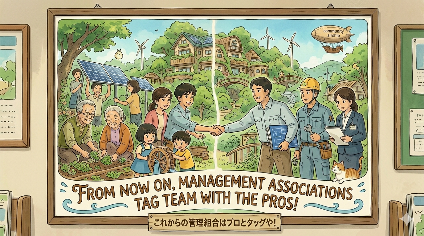 今はプロと一緒に運営してるマンションが増えてるで。外部の専門家のサポート例や、どんな風に日々の負担が減るのか、住人さんの体験談も交えて紹介すると仲間が増えるかも!