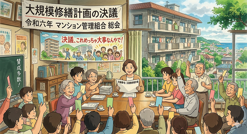 ちょっと聞いてや〜、マンション管理組合と大規模修繕計画の決議、これめっちゃ大事なんやで!