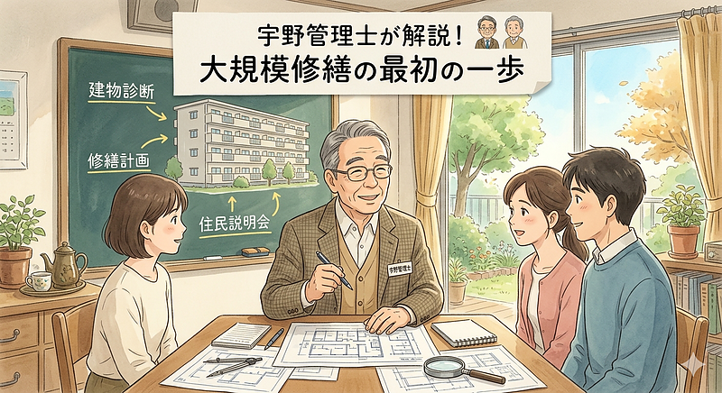 「大規模修繕って、気づいたら“いつの間にか始まってた”みたいに思われがちやけど、実はちゃんと“スタート地点”があるんやで。