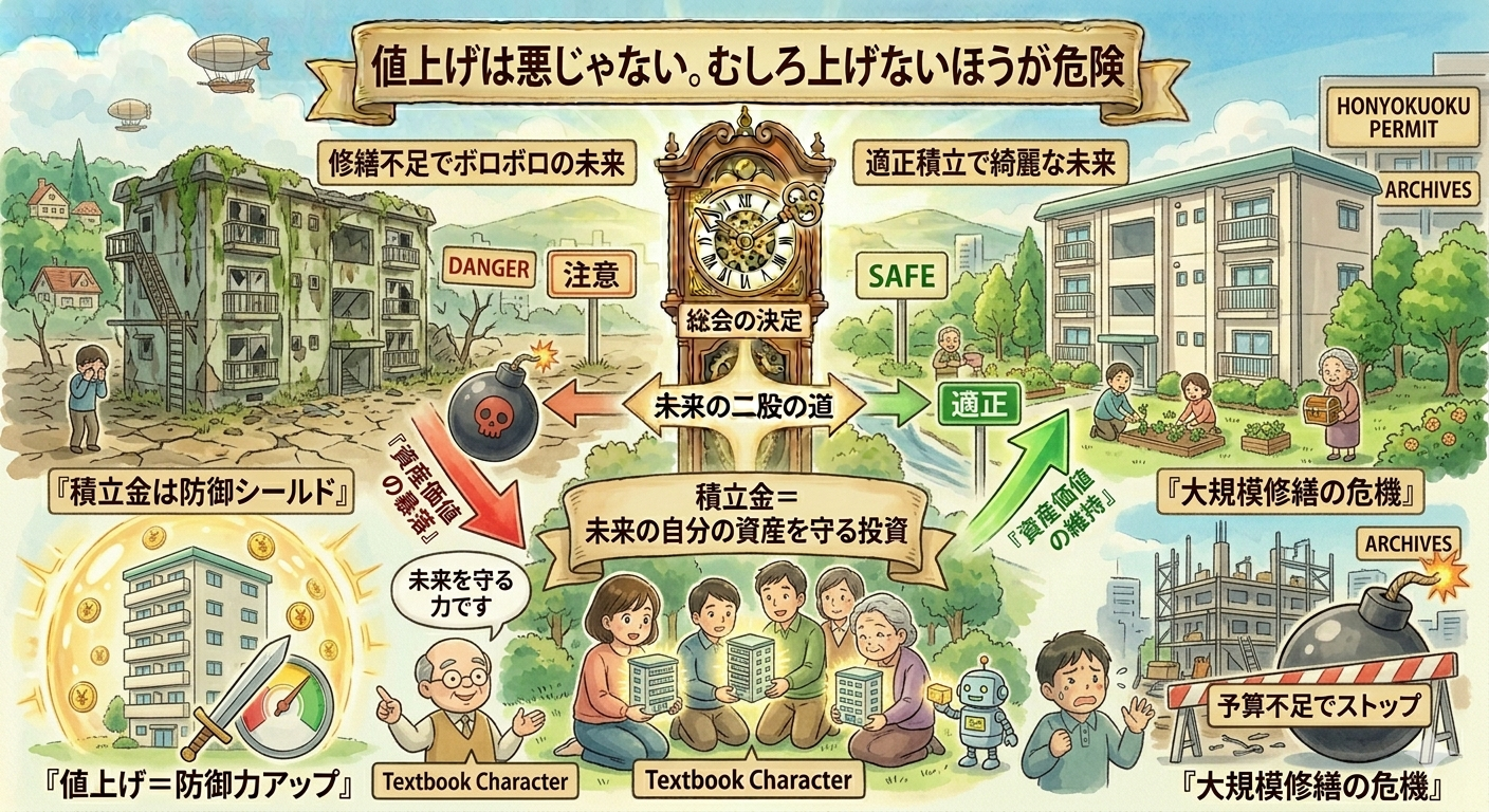 修繕積立金の値上げ=悪