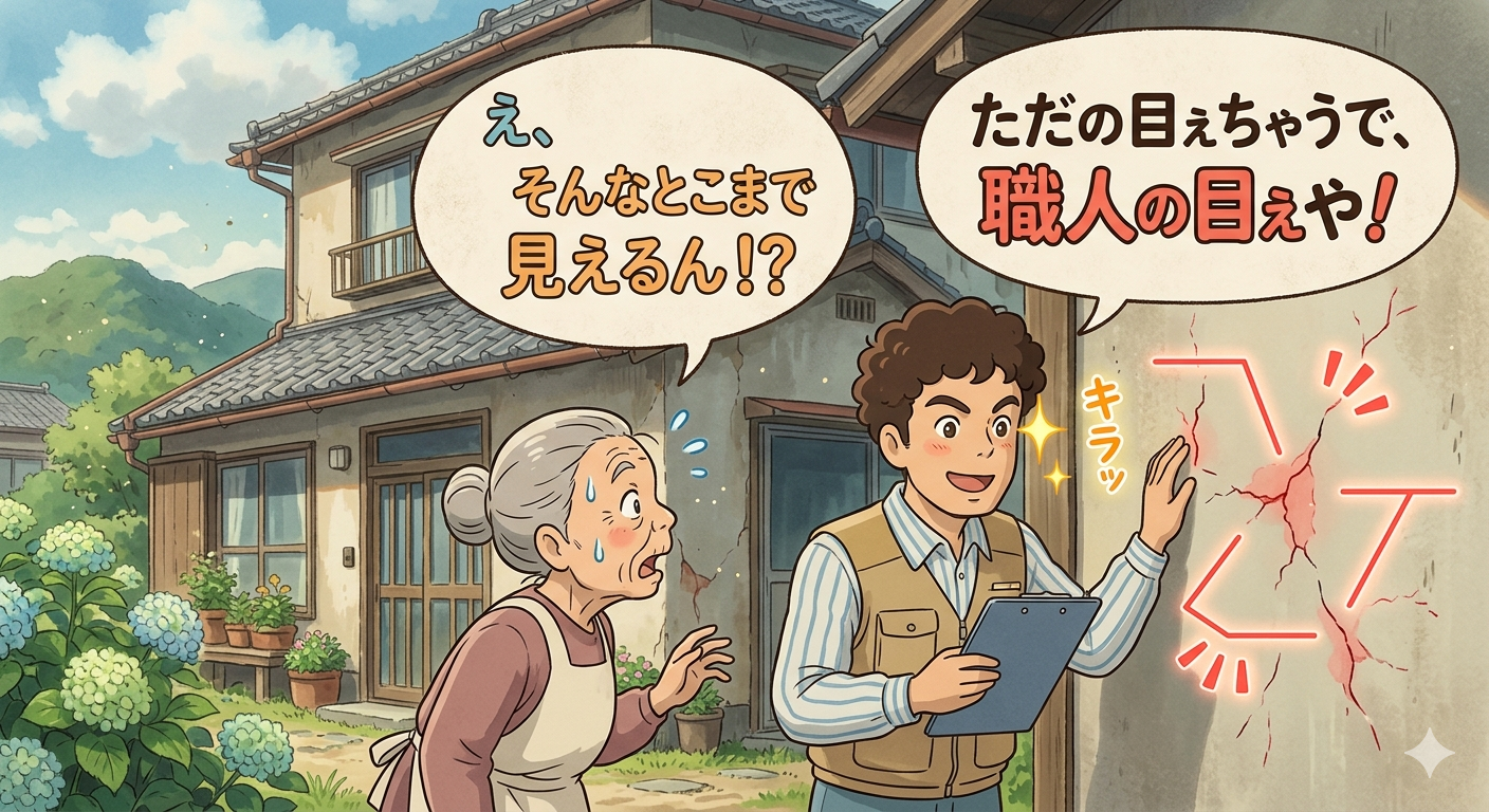 ヒビのクセ、サビの進み具合、雨漏りの予兆まで見抜きます。