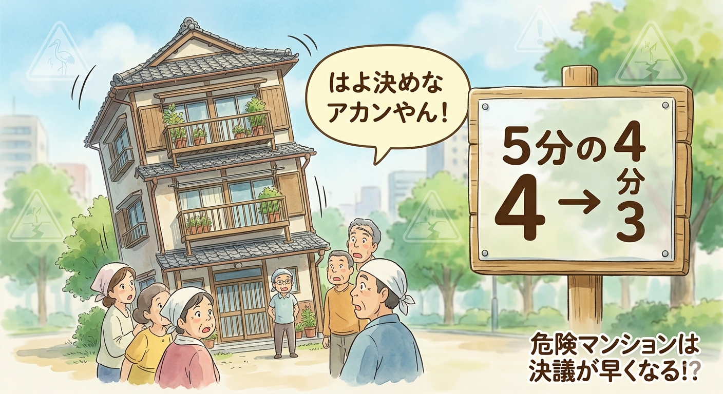 そんな“危険マンション”は、再生の決議要件が 5分の4 → 4分の3 に緩和されるって知ってた?