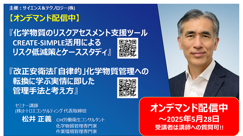 サイエンス&テクノロジー株式会社様での弊社代表による過去に大好評を博した改正安衛法関連のオンラインセミナー2演題を、新たにオンデマンド配信でお届けします!