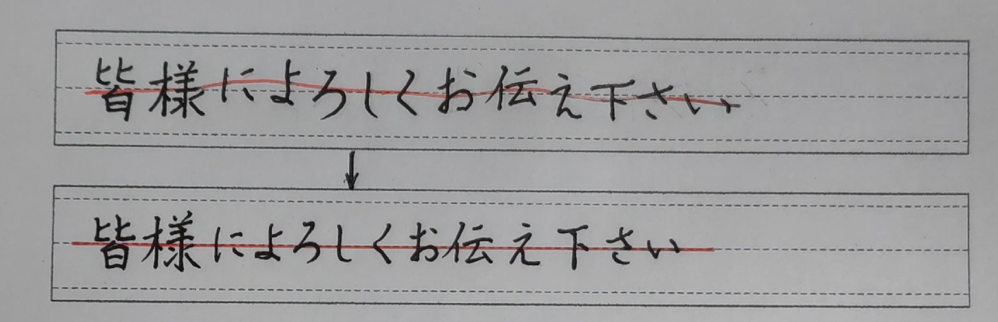 まずは「下揃え」で一行を真っ直ぐ書く練習をし、慣れてきたら「センターライン法」へステップアップすることをお勧めします。中心を通す書き方ができるようになると、罫線のない白紙の手紙などでも、プロのような気品ある字が書けるようになります。