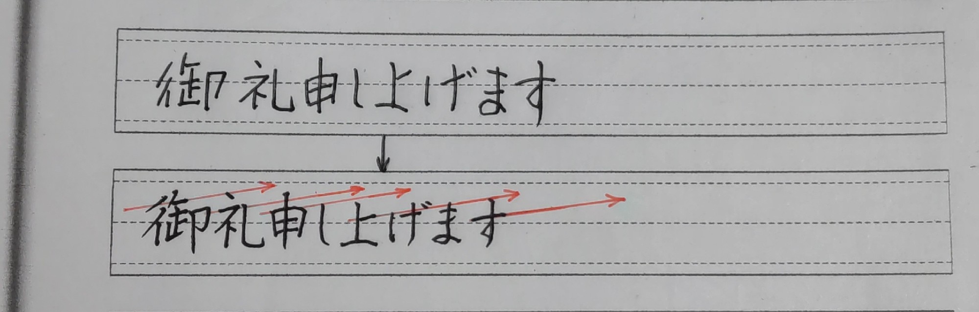 「右上がりに書く」のは美文字の基本ですが、横書きでは縦書き以上の注意が必要です。