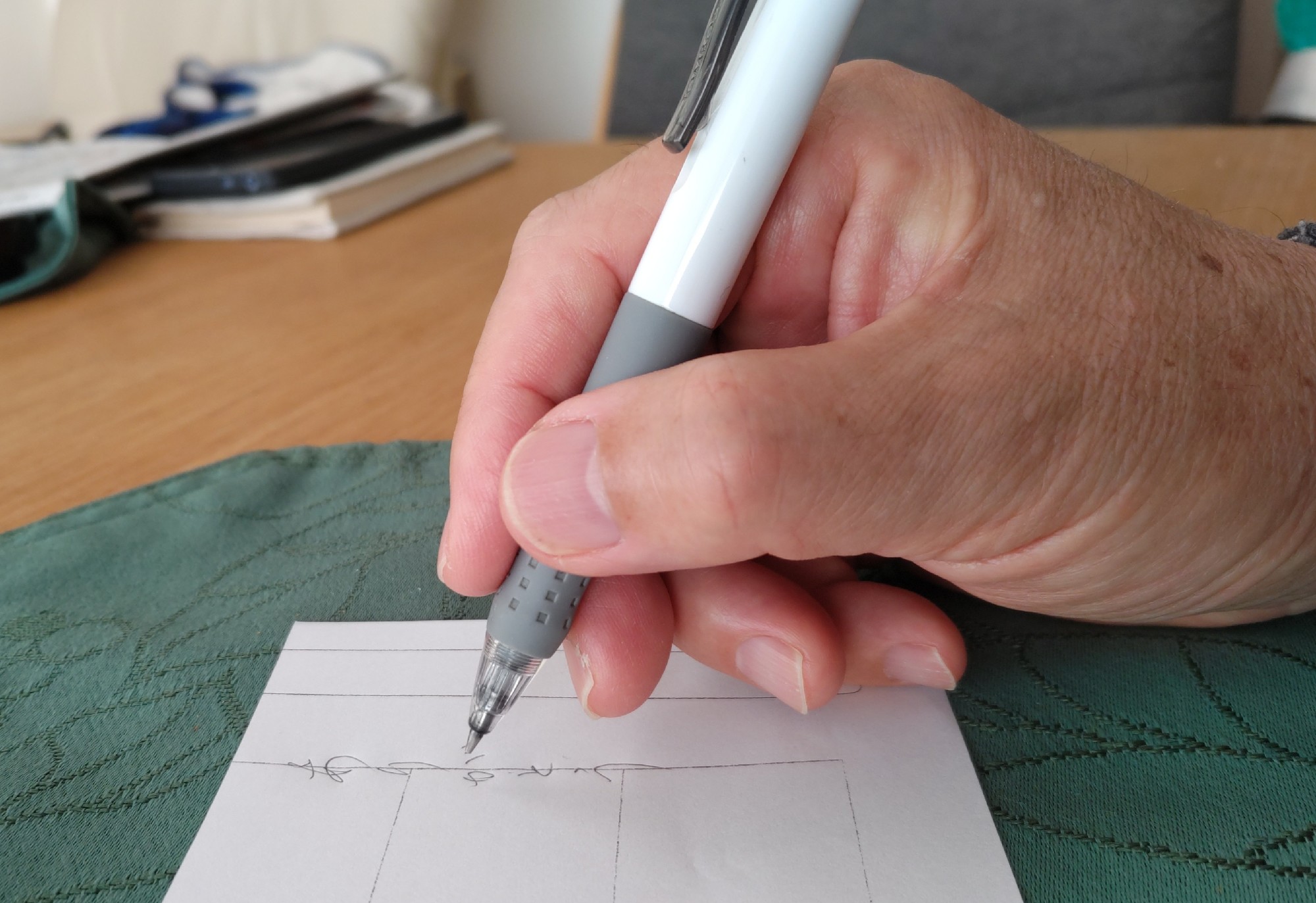 指がペン先に近すぎると、書いている文字が指で隠れてしまいます。ペン先から約2.5cm〜3cm上の位置を持てているか、視界を遮っていないかをチェックしてください。