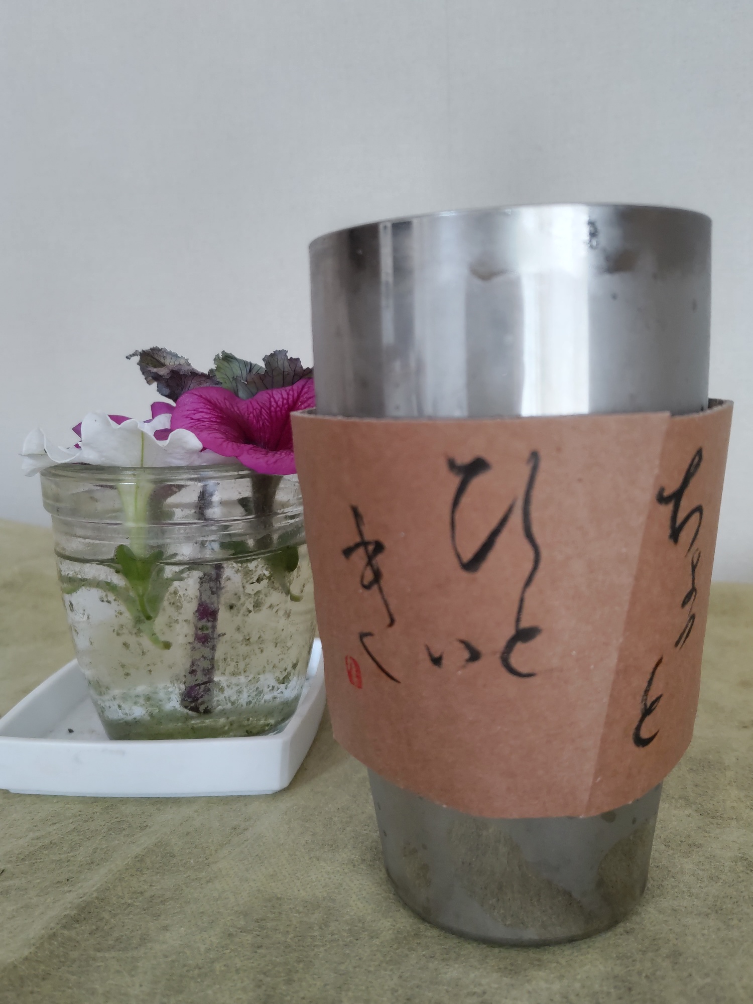 もらってきた竹の廃材に和紙を貼りつけ筆立てに