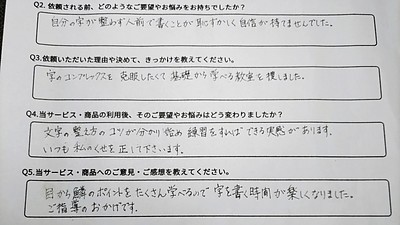 ペン字のコツを丁寧に教わり、長年抱え続けた字のコンプレックスが消えました!