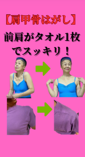 動画はこちら➨【1分】タオル1枚で前肩が魔法のようにスッキリ!肩甲骨はがし