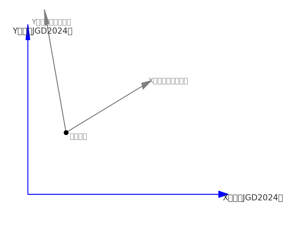 青い軸は公共基準点に基づくJGD2024(世界測地系)で、全国どこでも再現可能な座標系です。