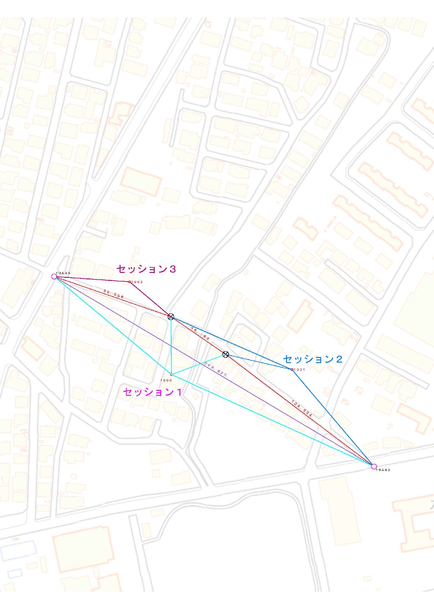 こうすることで、既設の基準点と新しく観測した点との関係をしっかりと確認しながら、