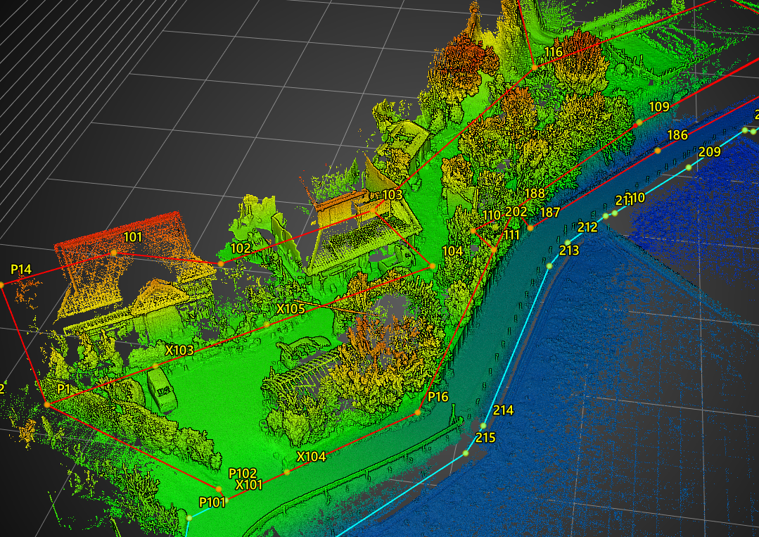 解析後の点群からノイズを除去し、構造物のエッジを精査する「手直し」に2時間を費やします。