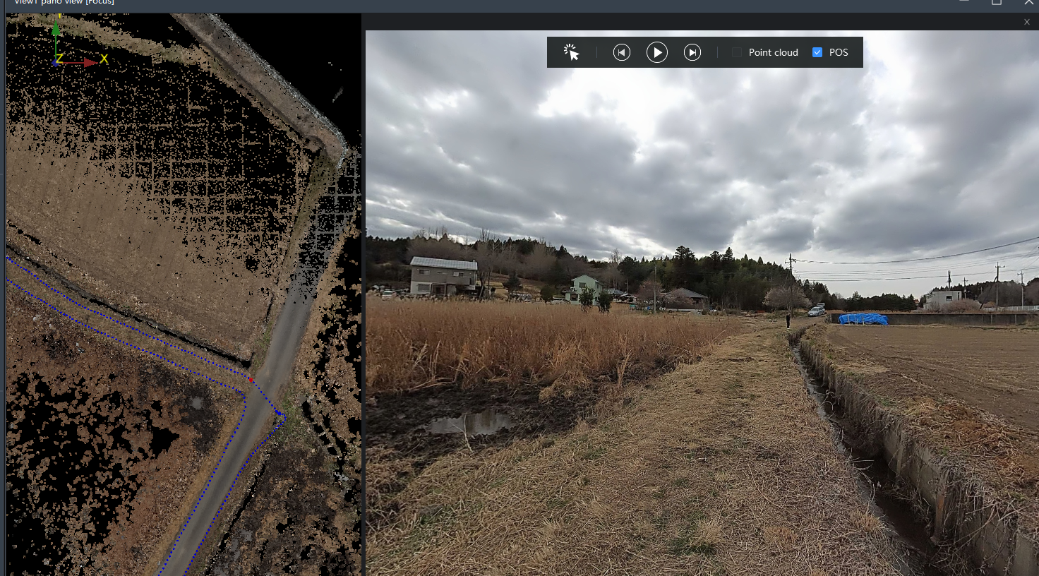このGNSSによる確かな位置情報を土台に、最新の**3D LiDAR SLAM(SLAM100)**を組み合わせています。レーザーで周囲の景色をまるごと点群データ(デジタルツイン)として記録しますが、このデータも、GNSSによる「正しい位置と向き」が与えられて初めて、再現可能な「証拠」としての価値を持ちます。