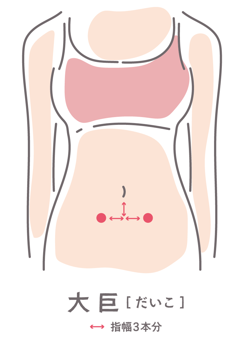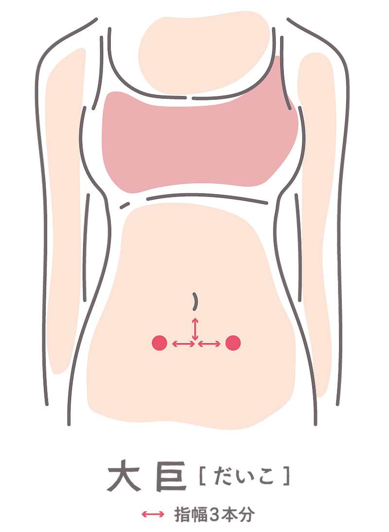 おすすめのツボ:天枢(てんすう)・大巨(だいこ)・足三里(あしさんり)