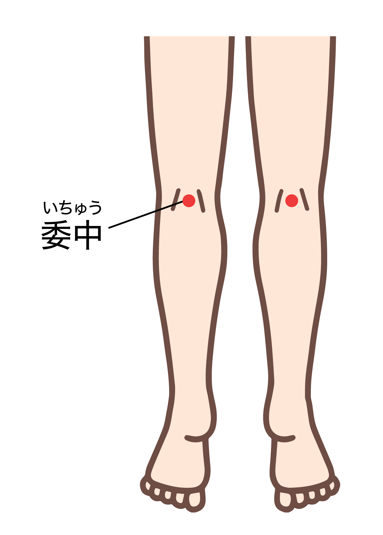 おすすめのツボ:委中(いちゅう)・腎兪(じんゆ)・承扶(しょうふ)