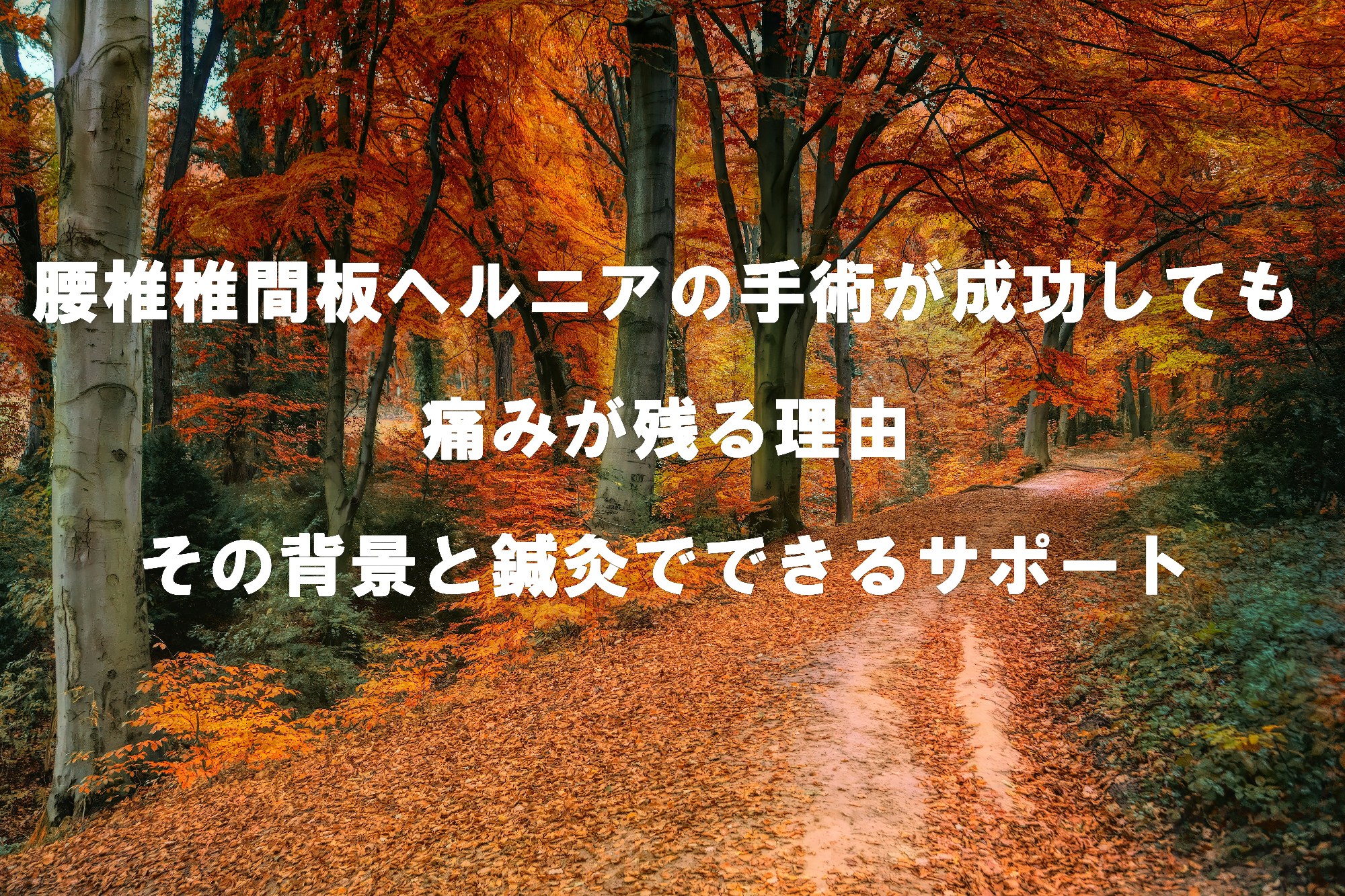 また、鍼灸はあくまで「術後の回復・補助治療」であり、ヘルニアそのものの構造異常を直接「戻す」わけではないことを理解する必要があります。