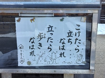 先日の寒波時、自家用車運転より安全と思い徒歩で出かける。ある寺院の玄関先に、松下幸之助さんの格言が掲示されている。 まさに、その通りと感心するばかりである。