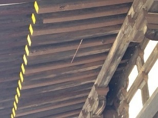 その名残か・・失敗した矢が今でも軒下に刺さったままである・・・
