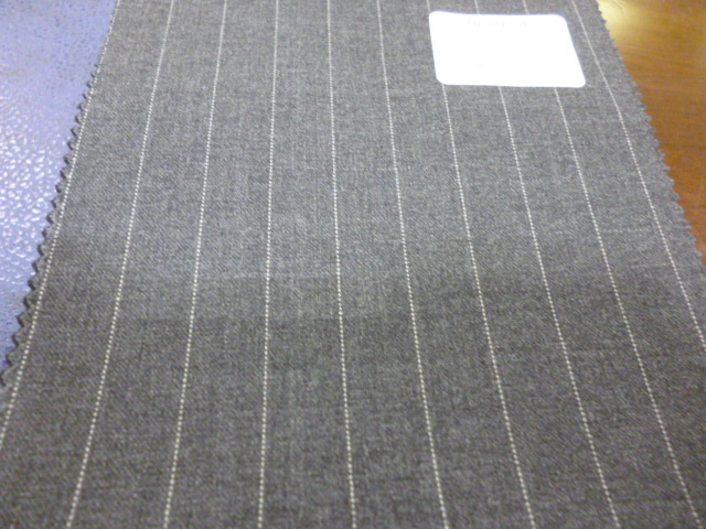 生地はミディアムグレーの色合いをベースに、上品なピンストライプを配しています。