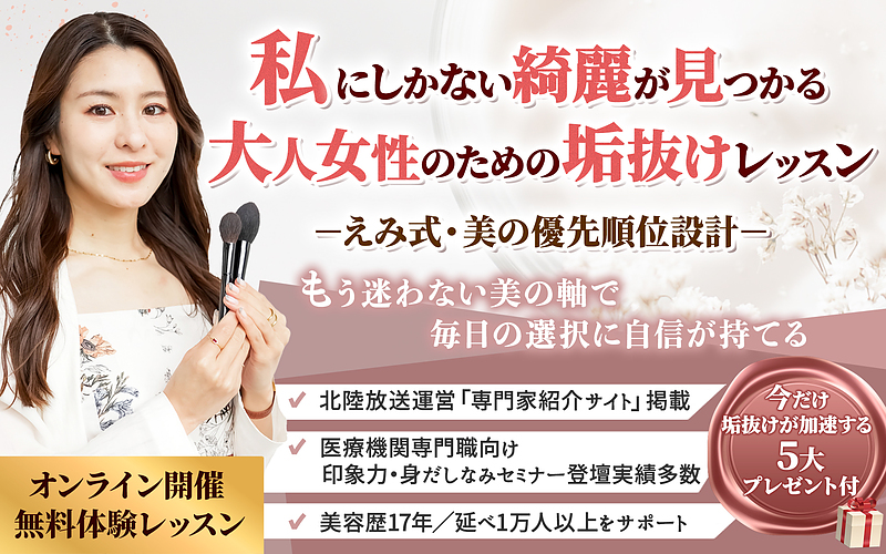 東京で培ったヘアメイク技術と、カラー・骨格・顔タイプ診断を融合。似合うを感覚ではなく理論で導き、垢抜けを実現。継続サポートで外見だけでなくマインドも磨き、芯から輝く女性を育てる。