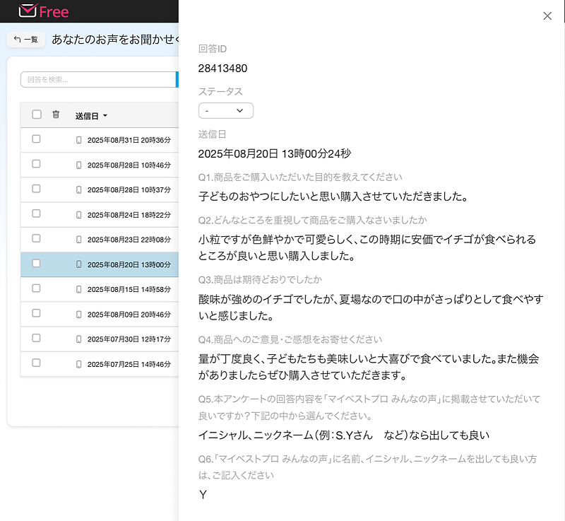 「お客様の声」には、実際にサービスを利用した方からのアンケート回答をそのまま掲載いたします。お客様から頂いていない声や、自作自演した声など虚位の投稿は行わないようアンケートアプリの画像を併せて投稿いたします。これからサービスを利用する方の参考になるよう実績や信頼性を重視してお届けいたします。