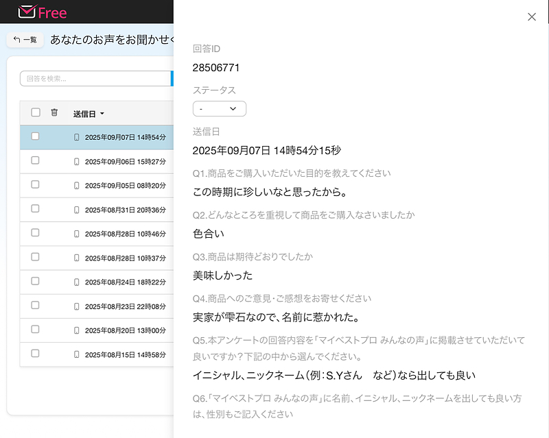 「お客様の声」には、実際にサービスを利用した方からのアンケート回答をそのまま掲載いたします。お客様から頂いていない声や、自作自演した声など虚位の投稿は行わないようアンケートアプリの画像を併せて投稿いたします。これからサービスを利用する方の参考になるよう実績や信頼性を重視してお届けいたします。
