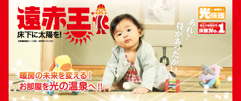 遠赤王は光(遠赤外線)の暖房なので、火のない安全性はもちろん、熱で空気を暖めることをしないので、空気の乾燥しないのも魅力的!補助暖房が必要なくなることもあり、お部屋も広く使えます。火傷の心配がないので、お子様やペットのいるご家庭にもおすすめです。保育園での導入実績もあり、火のないことや、空気の乾燥がなくインフルエンザ対策にもなると喜ばれています。「抱っこのような温かさで子供たちもニコニコ!」と可愛らしい声もいただきました。