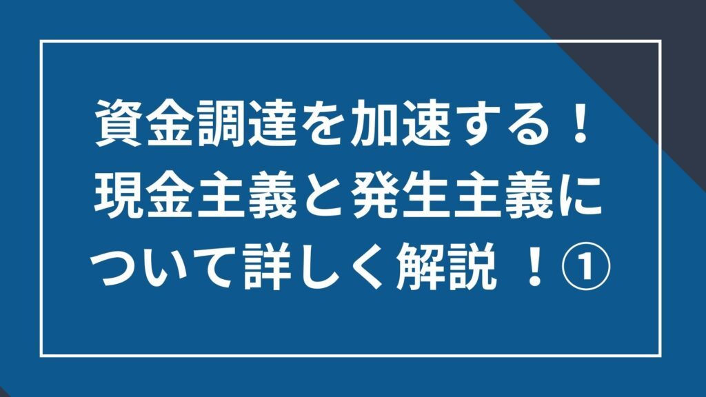資金調達を加速する! 現金主義と発生主義について詳しく解説1