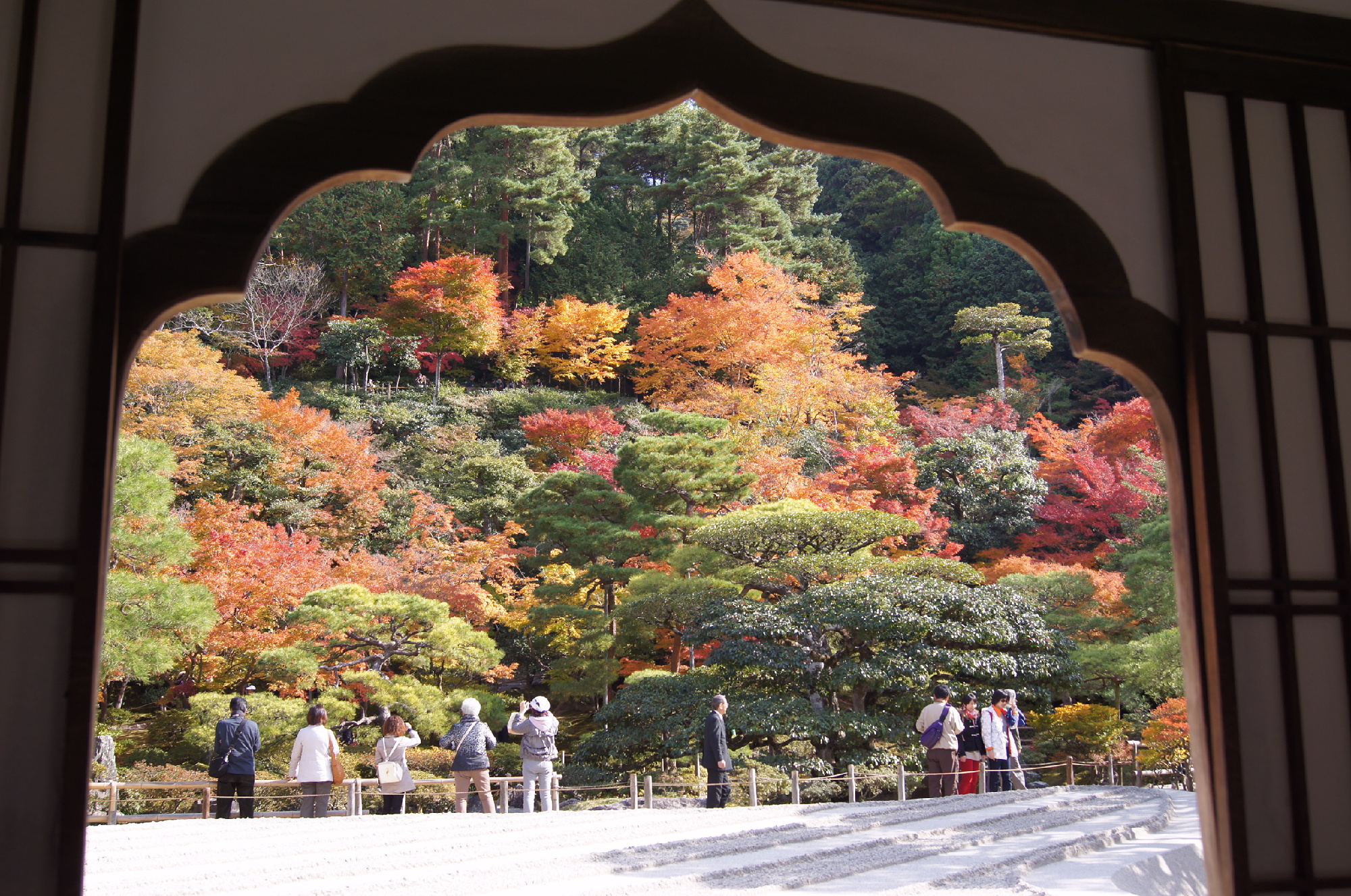 銀閣寺1 「銀沙灘と向月台と呼ばれる白川砂の砂盛り」から眺める”観音殿”