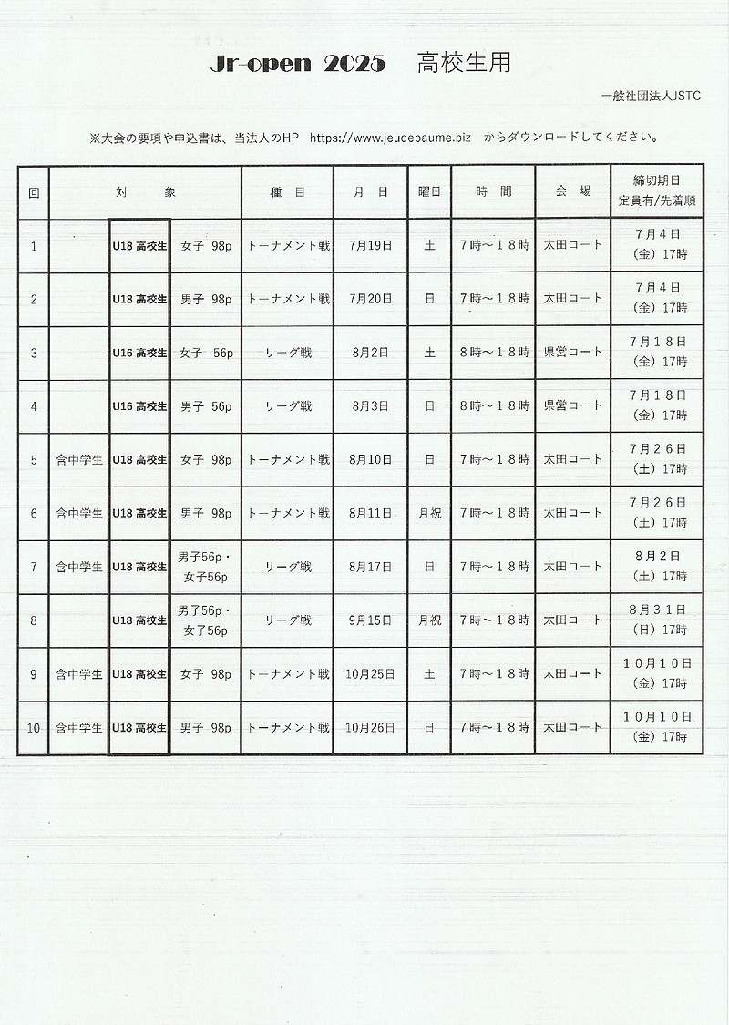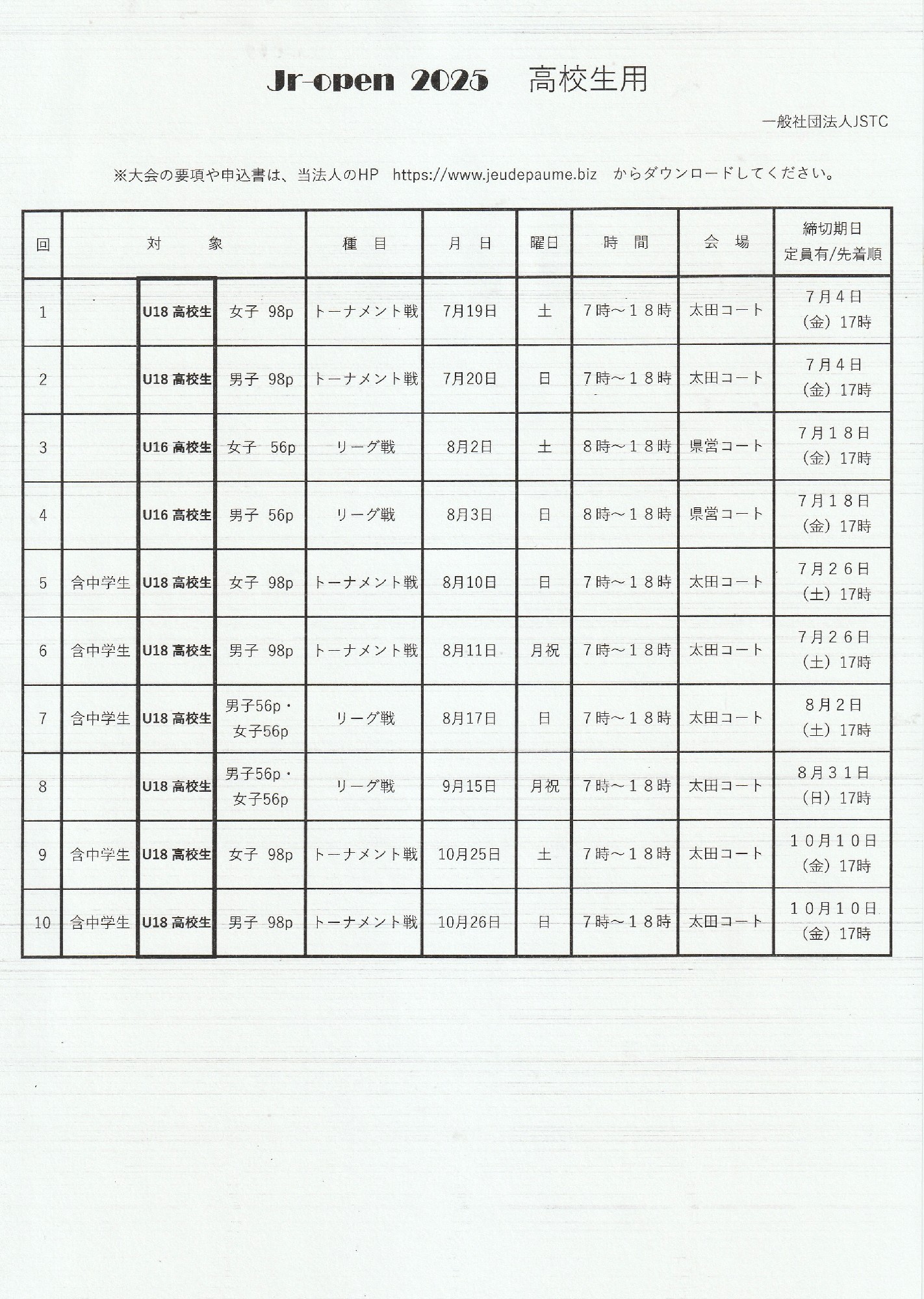 本年度の高校生(高校生のみ又は高校生を含めた)の「Jr-open」を添付のとおり開催します。