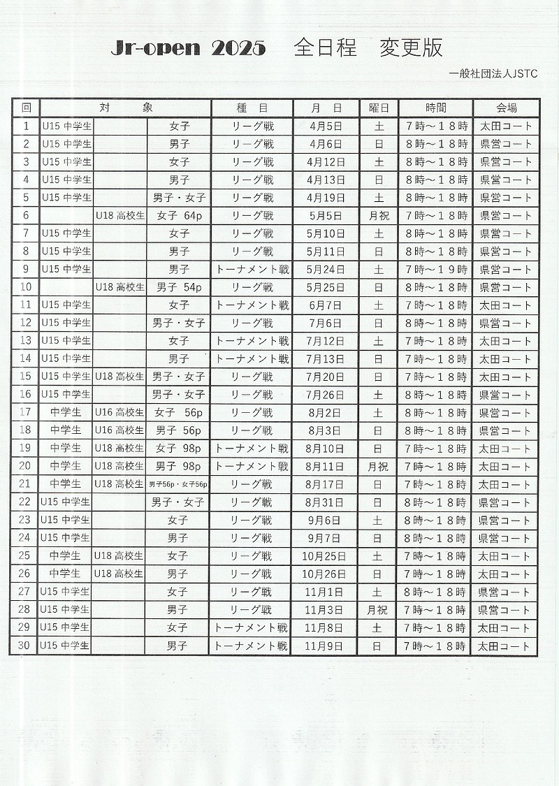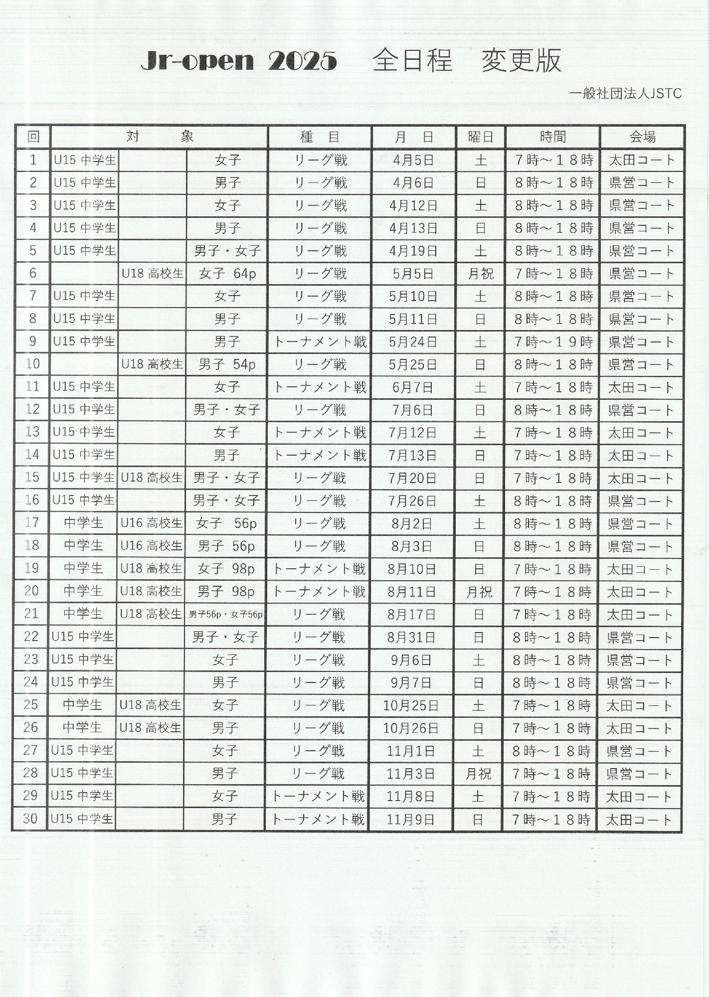 Jr-openの全日程の変更開催は、下記添付のとおりです。