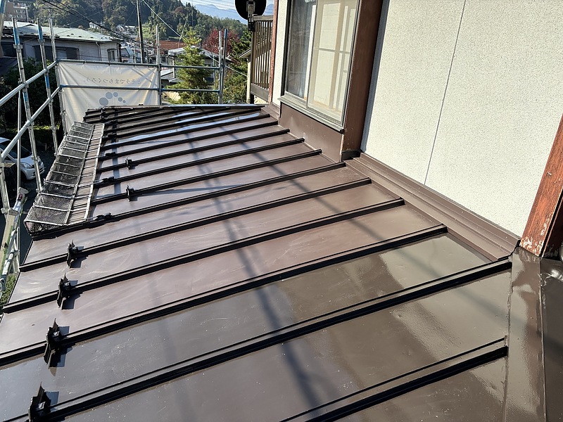 瓦棒葺き屋根は、板金屋根のことで、長尺(端から端まで一枚物で施工する工法)タイプの縦葺き屋根です。