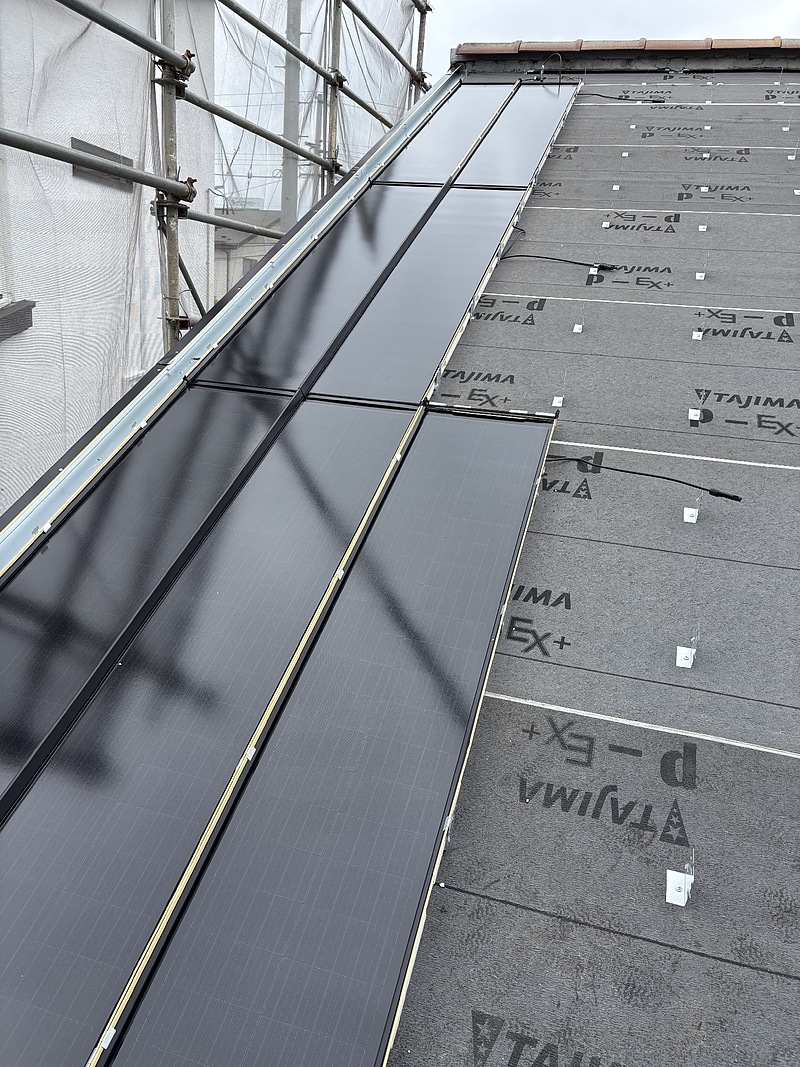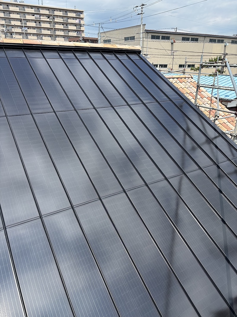 通常の金属屋根以上の防水・耐風性能と、太陽光発電が一体化するという贅沢仕様