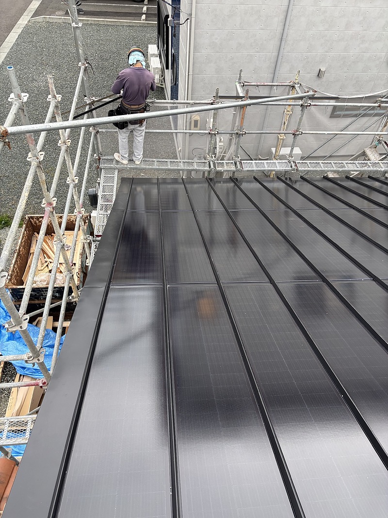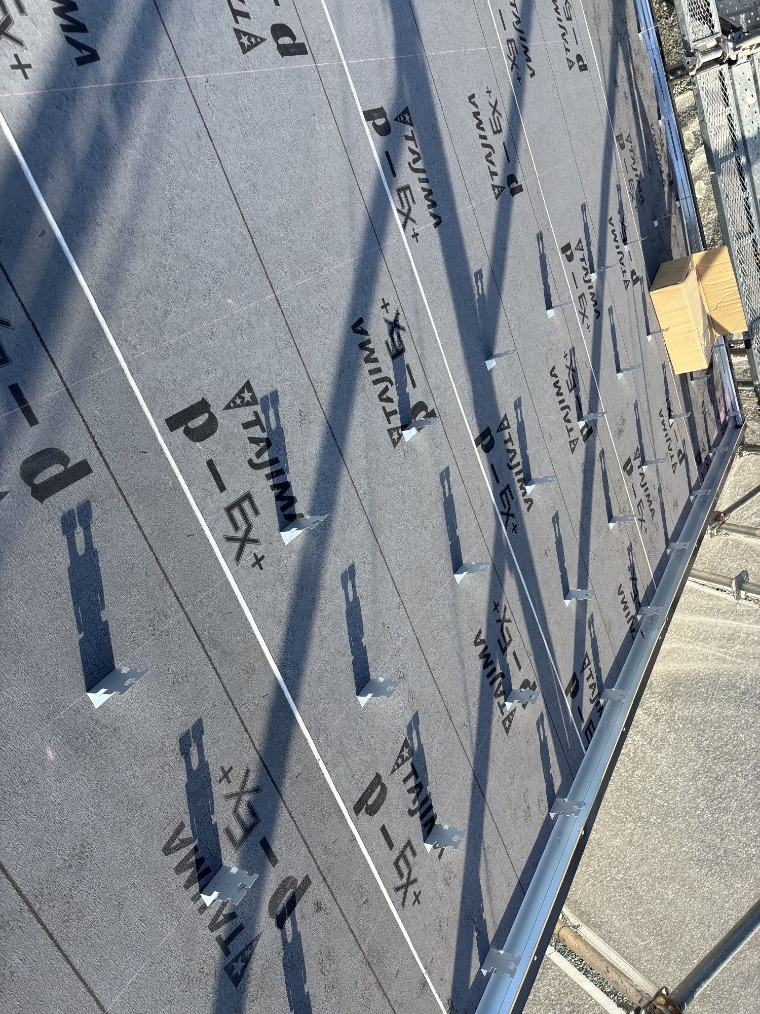 施工中は通常の屋根工事と同様にルーフィングを張り、その上にROOF-1を張り上げていきました。