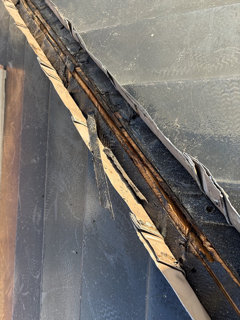 横葺き屋根の雨漏りは、ハゼをコーキングで塞いでも止まりません。